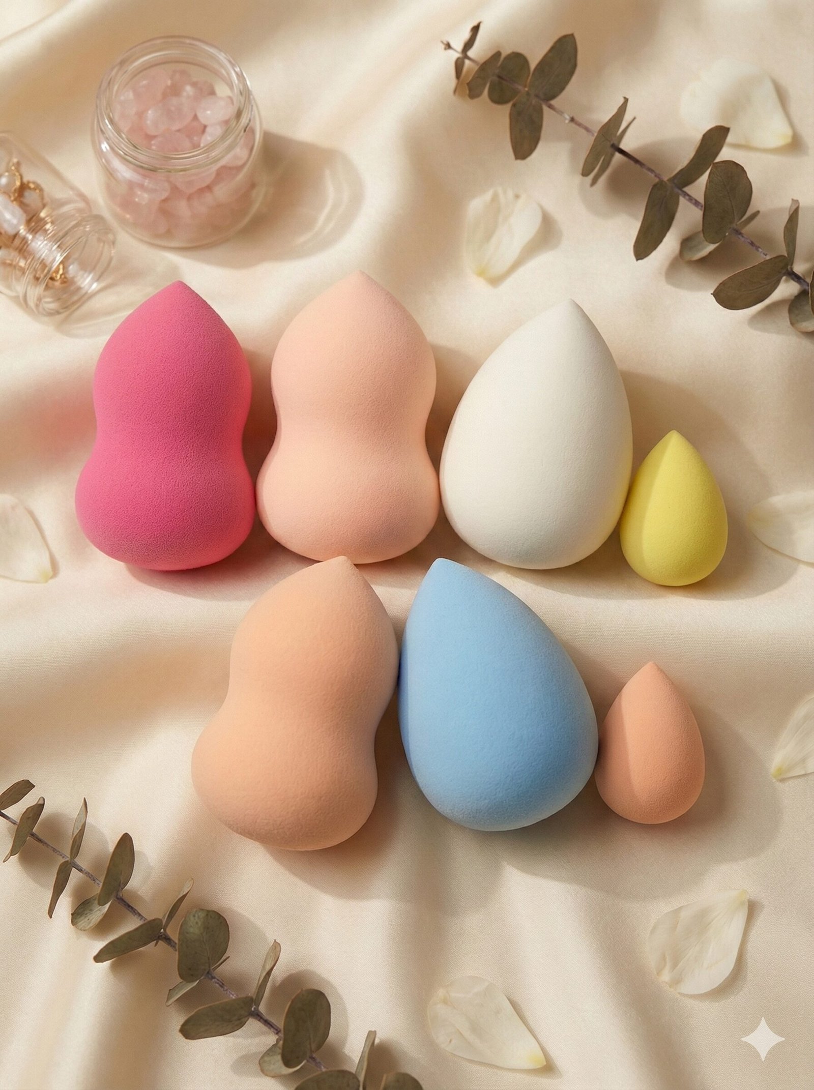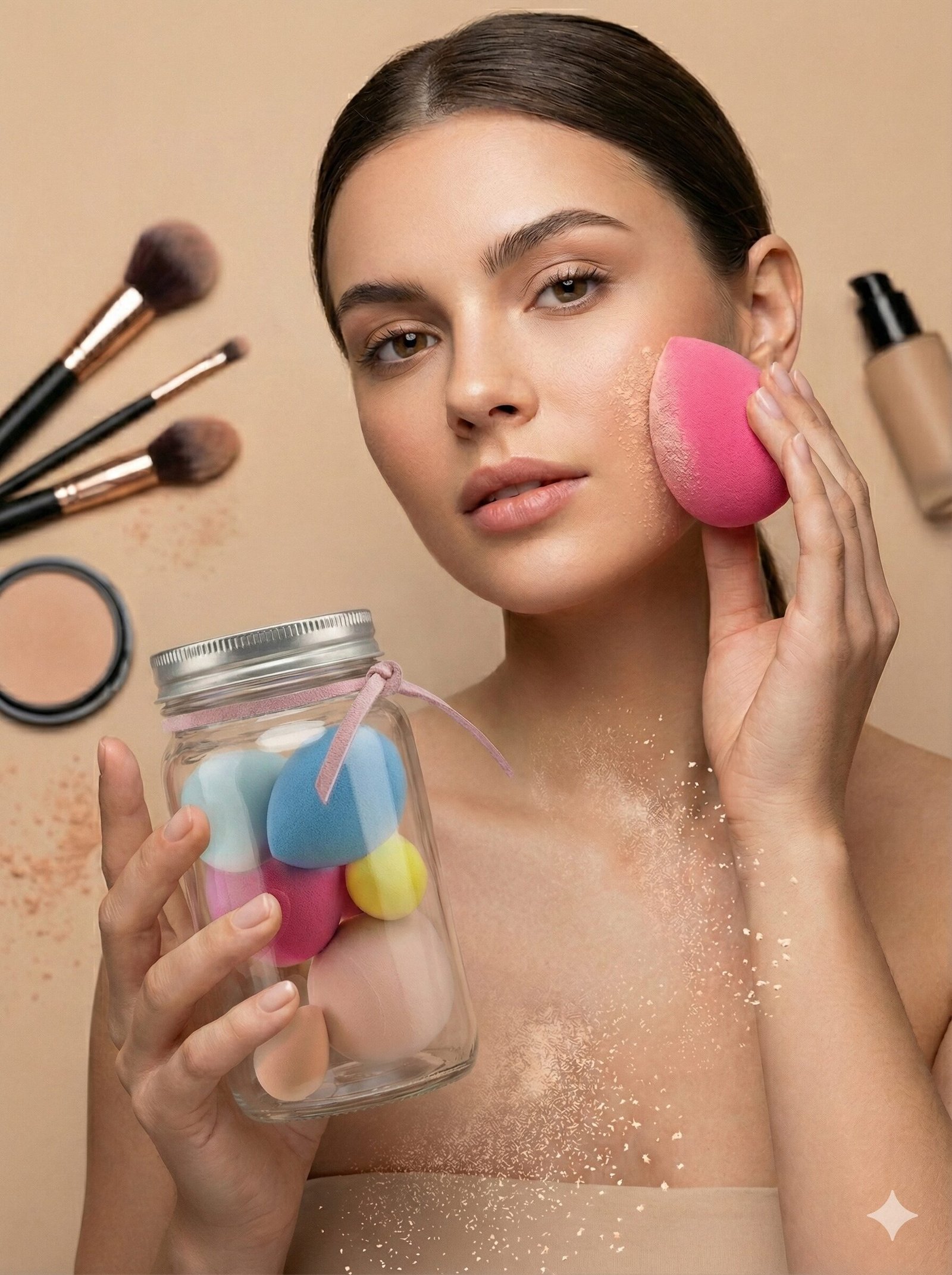 Hygienic Storage: The sponges come packed in a clear jar with a lid, keeping your tools dust-free and organized on your vanity.