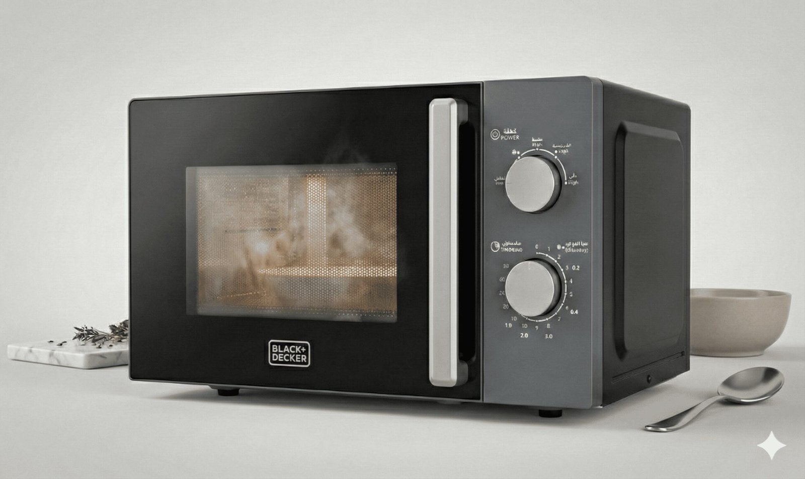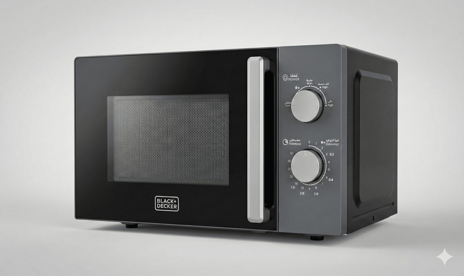 BLACK+DECKER Microwave Oven, 20L, 700W Power, 30-Min Timer, Rotary Dial Control, Chrome Finish Knobs, 5 Power Levels for Precise Cooking, Compact Design for Kitchens, Black – MZ2015P-B5