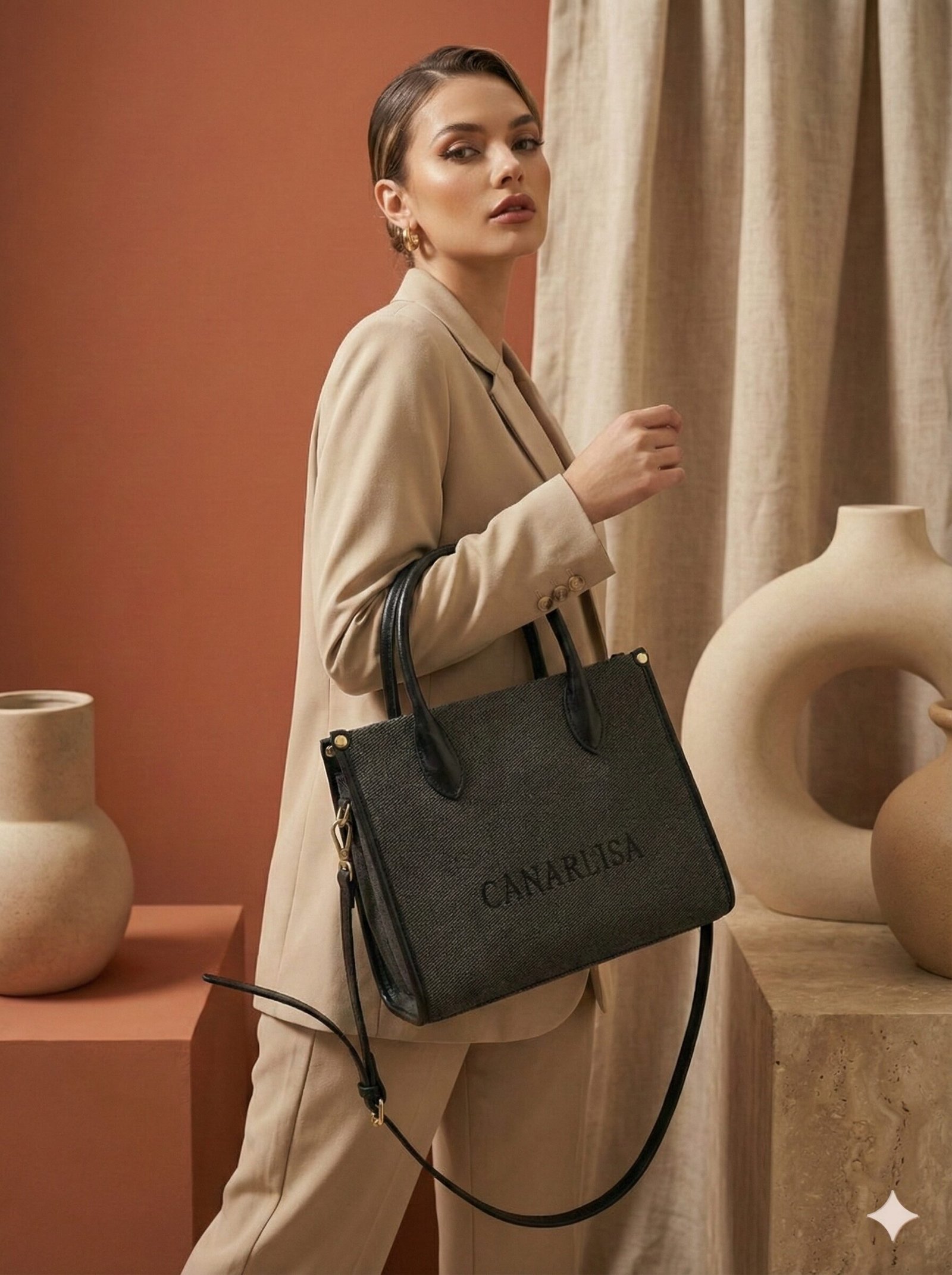 Durable Texture: The woven, canvas-like exterior is resistant to daily wear and tear while adding tactile interest to your outfit.