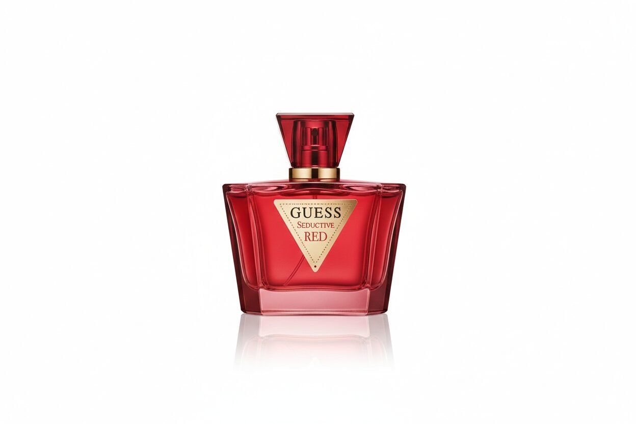 Eau de Toilette (75ml / 2.5 oz): A striking crimson bottle adorned with the gold GUESS triangle, containing a scent that is both sweet and daring.
