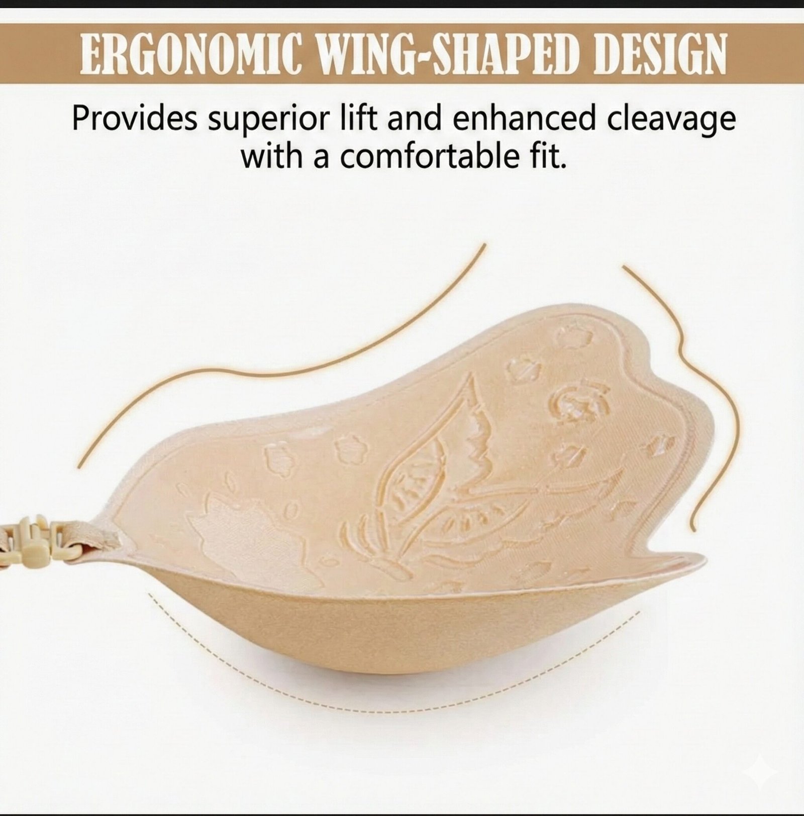 Product Overview: Wear your favorite backless, strapless, or plunging neckline outfits with confidence using the Invisible Wing-Shaped Adhesive Bra. This stick-on bra is the ultimate solution for invisible support, offering the freedom of going braless with the lift and shape of a traditional push-up. The seamless nude fabric blends effortlessly with your skin, ensuring a smooth silhouette under even the tightest clothing.