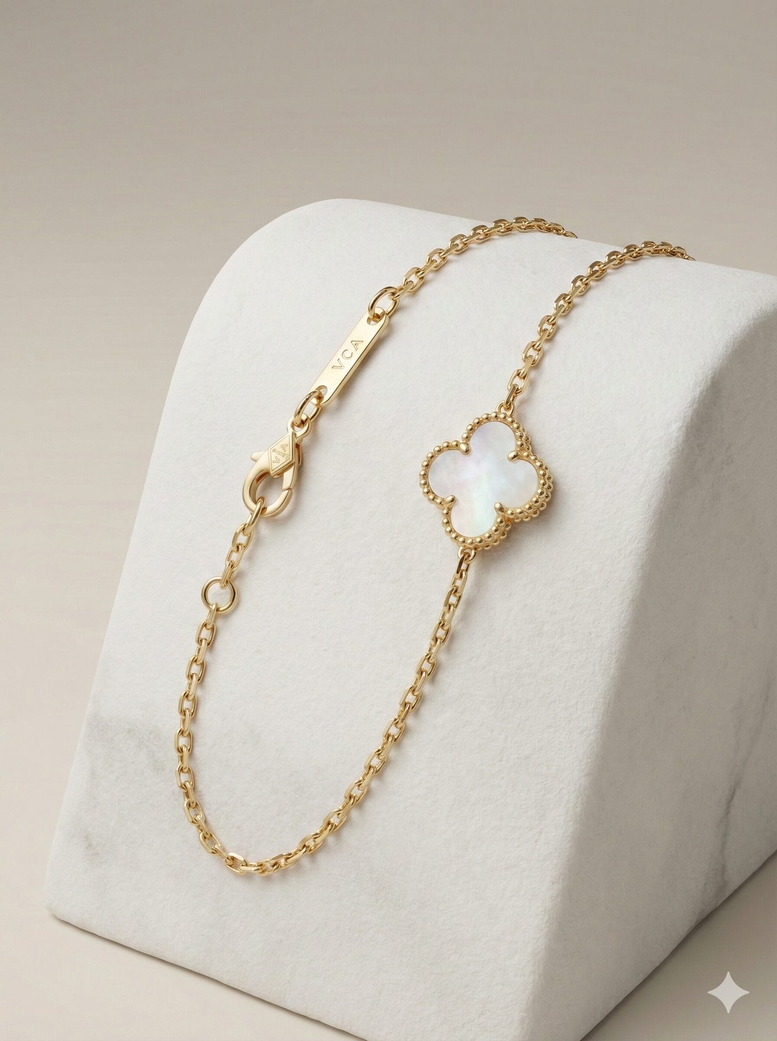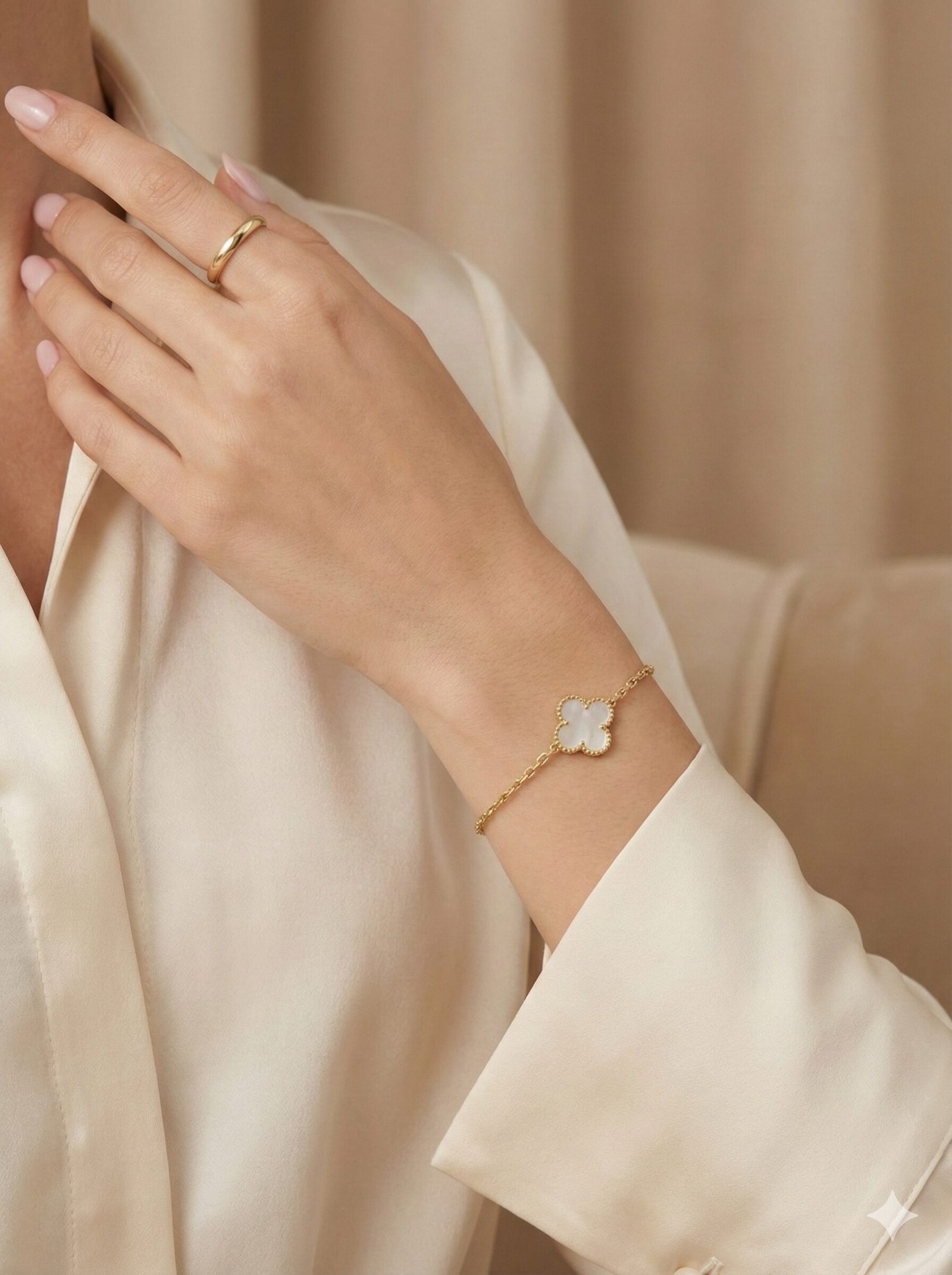 Luminous Centerpiece: Features a single clover charm inlaid with genuine-style white mother-of-pearl that shines with a gentle, pearlescent glow.