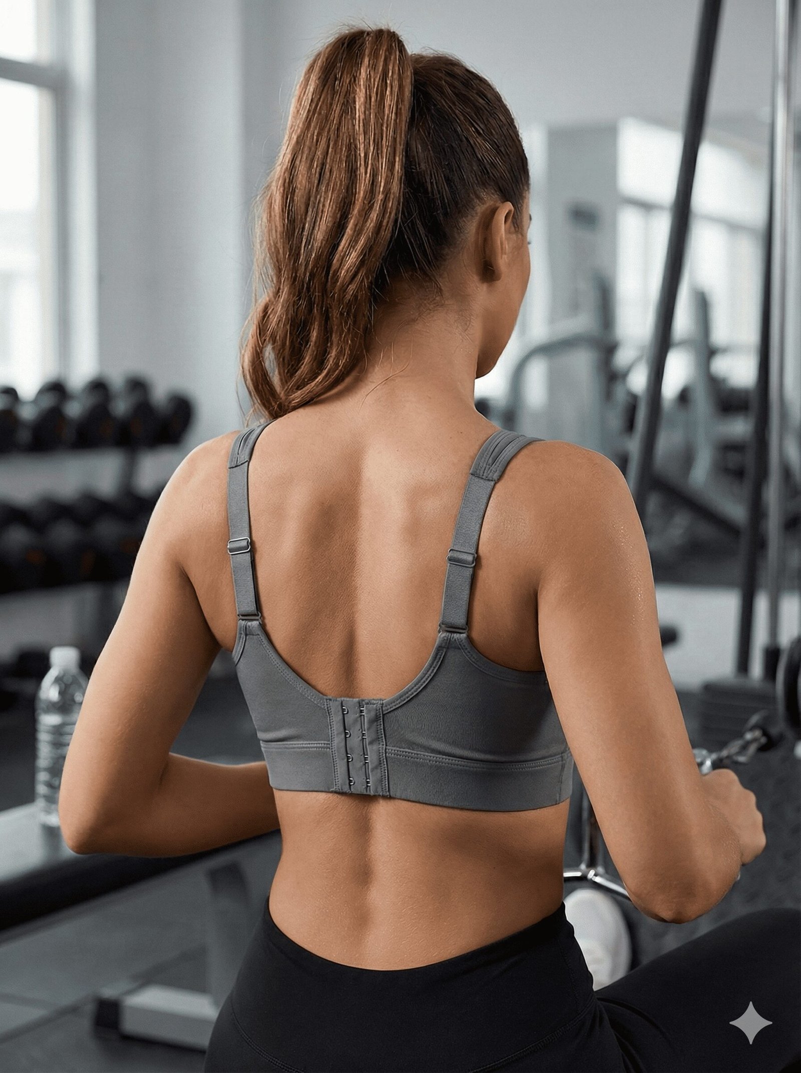Secure Support A wide, reinforced underband sits firmly against the ribcage to minimize movement and provide stability during gym sessions or daily activities.