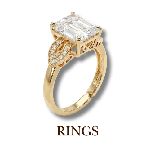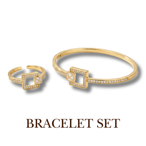 Gold-Tone Geometric Square Bracelet and Adjustable Ring Set with Crystal Accents and White Inlay