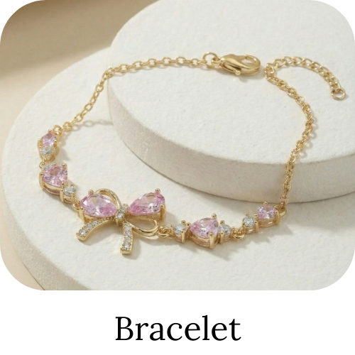 Silver-Tone Delicate Chain Bracelet with Pink Stone Bow Motif and Crystal Accents